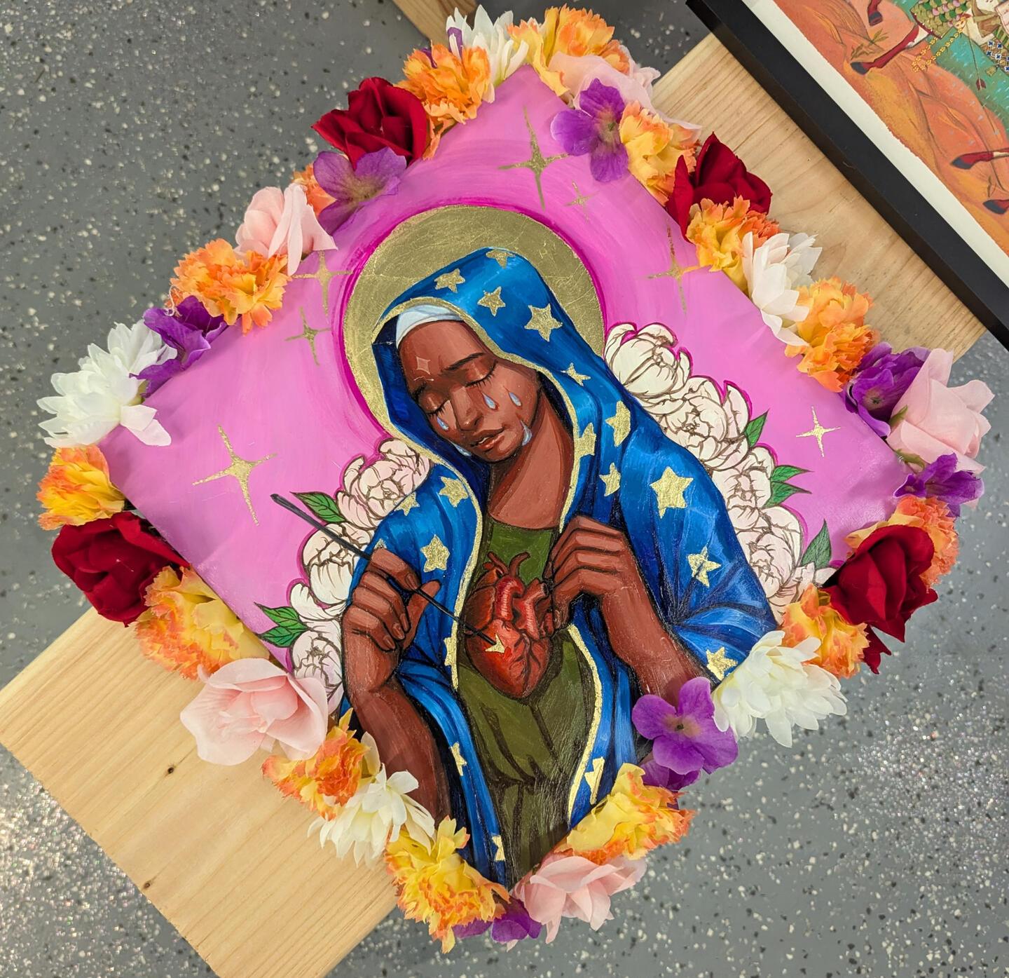 Our Lady of Sorrows Skateboard Altar - Acrylic Mixed Media & Custom Wood Altar (2017)